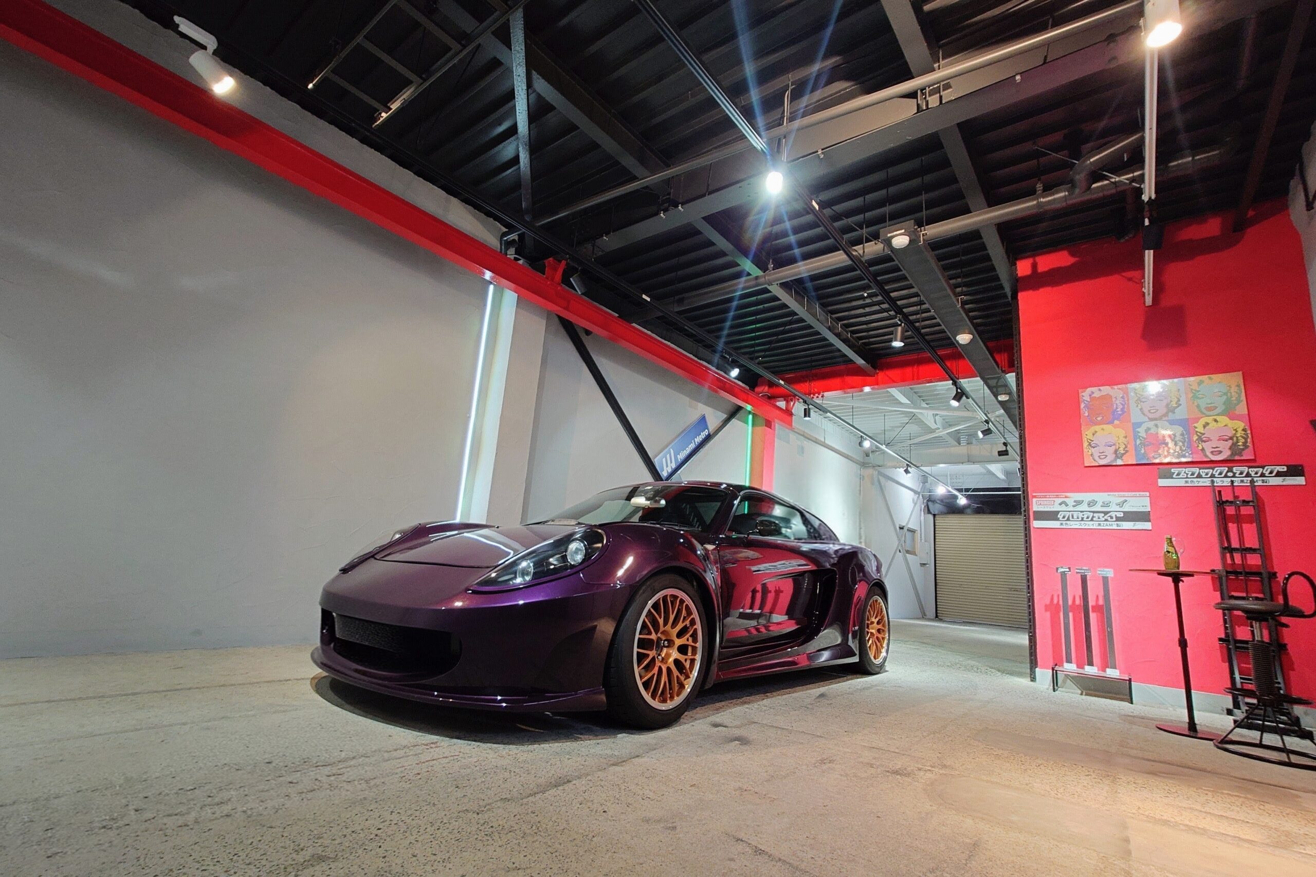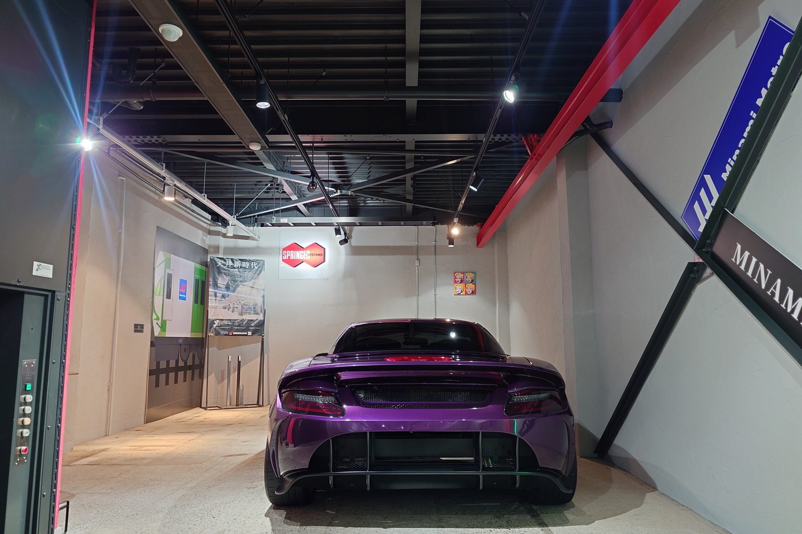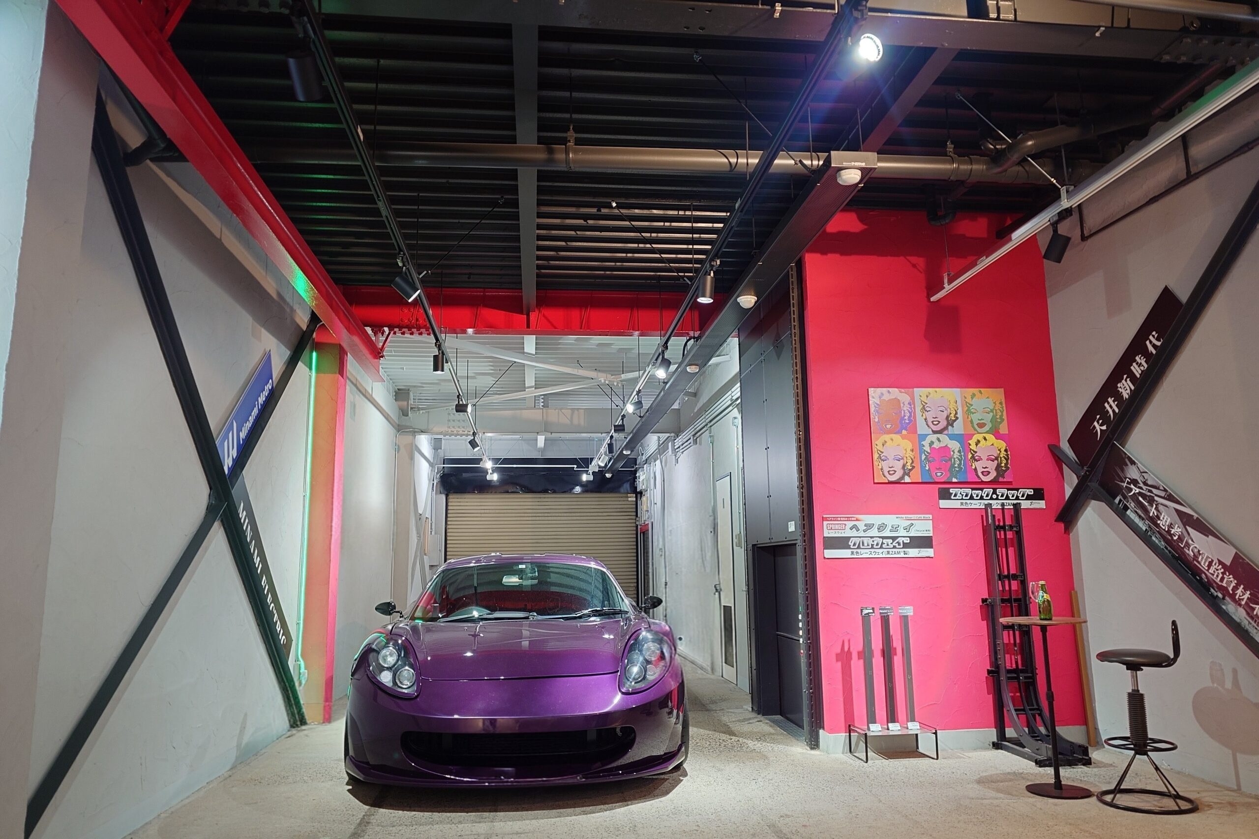 黒色スケルトン天井が、スポーツカーのガレージにもよく似合います。