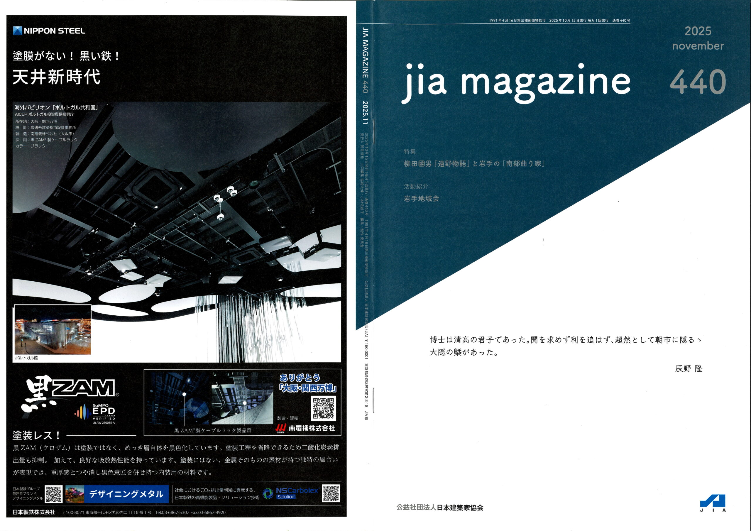 公益社団法人 日本建築家協会(JIA)様の機関誌「JIA MAGAZINE Vol.440 2025年11月号」、日本製鉄株式会社 様「黒ZAM®」の裏表紙広告に弊社ケーブルラック(ネトアミラック™)をご採用された『大阪・関西万博 ポルトガル館』様の写真が裏表紙を飾りました。