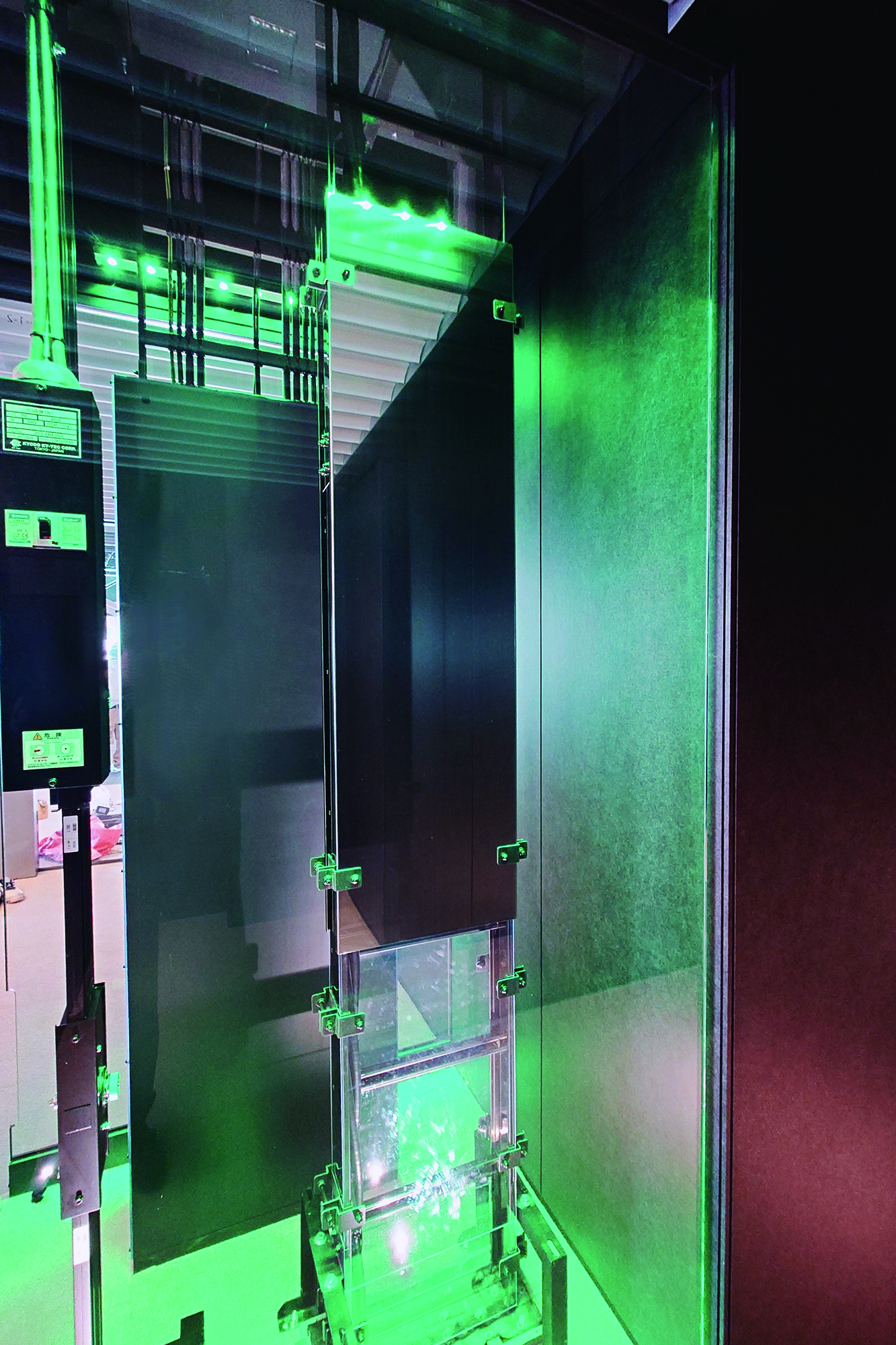 エントランスにはシースルーEPSを設置され、弊社最高グレードの「化粧ステンレス製ケーブルラック(鏡面ブラック)」をご採用され、緑と青のコーポレートカラーや季節によって変化するイルミネーションを楽しめます。