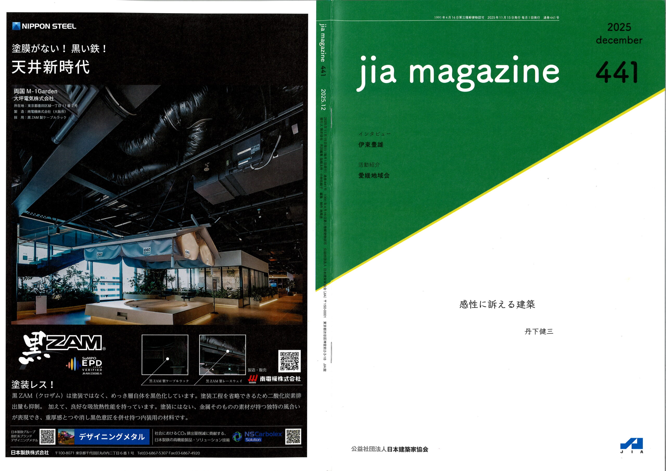 公益社団法人 日本建築家協会(JIA)様の機関誌「JIA MAGAZINE Vol.441 2025年12月号」、日本製鉄株式会社 様「黒ZAM®」の裏表紙広告に弊社ケーブルラック(アーバンラック™)をご採用された大坪電気株式会社『両国M-1Garden』様の写真が裏表紙を飾りました。