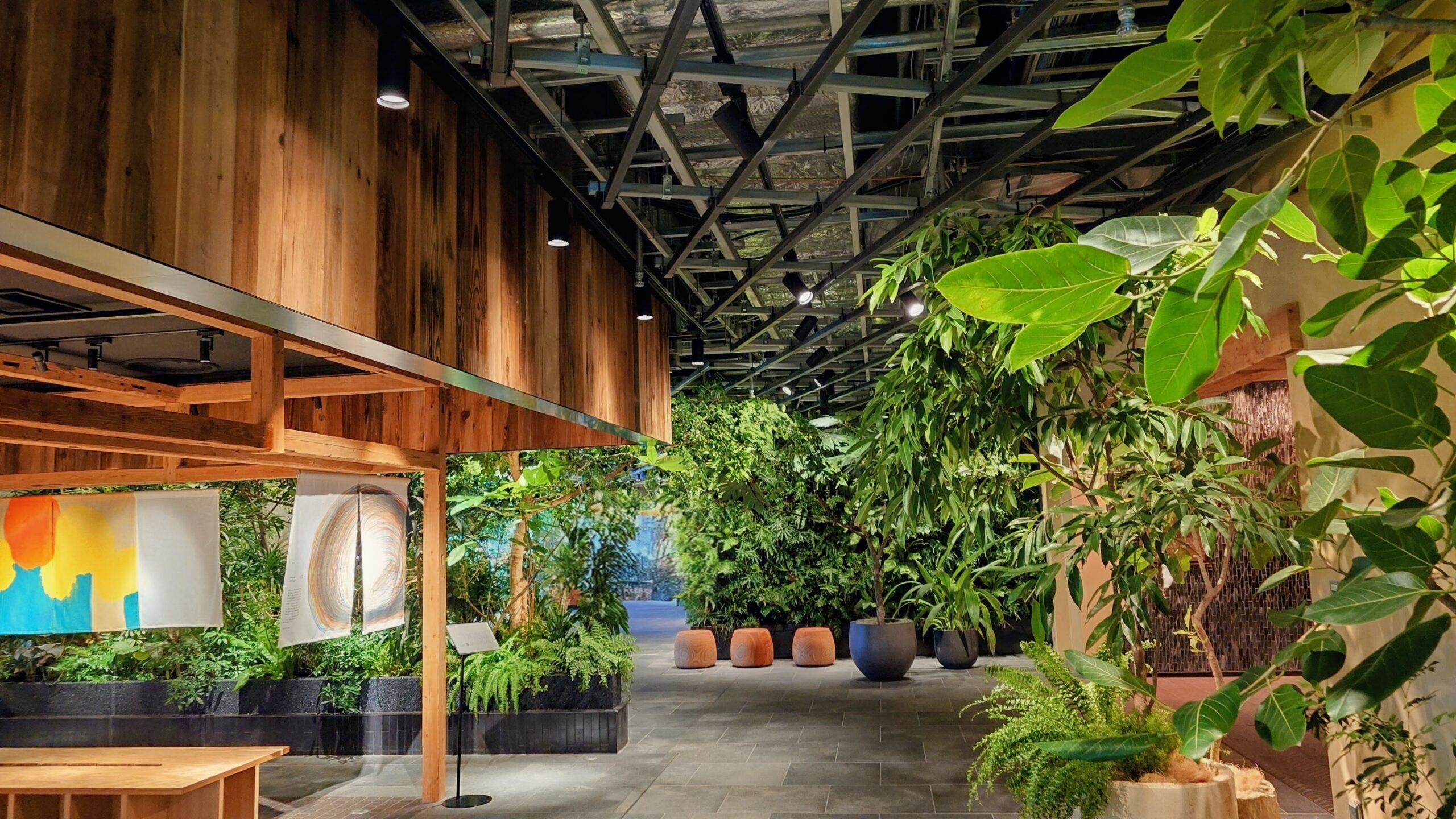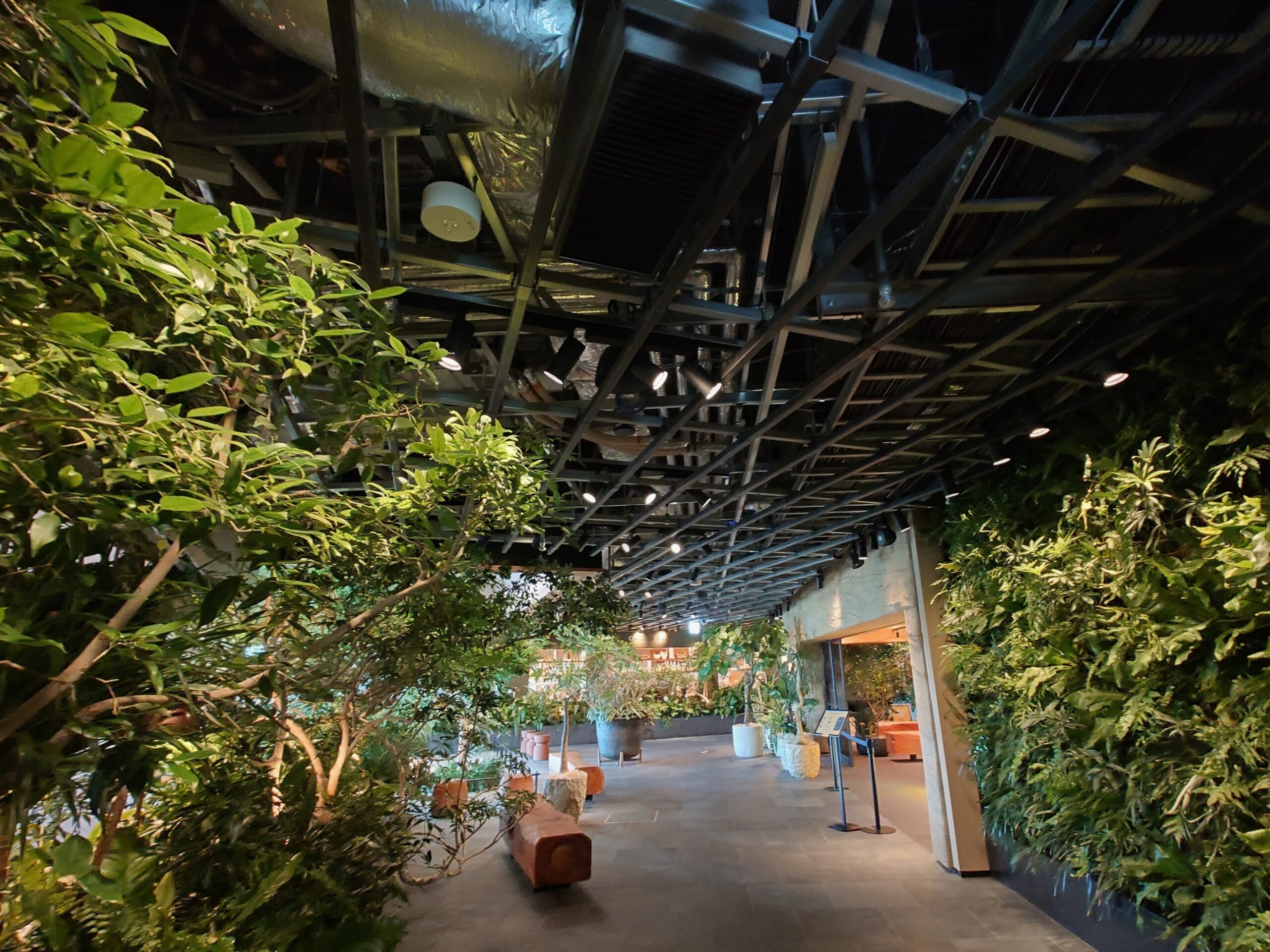 地上約150m、延床約8,000㎡のスケールに世界でも類を見ない500本以上の大規模植物を配するエリア。テクノロジー全盛の今だからこそ、ルミネは「リアル体験価値」に徹底してこだわり、“都心の別荘”づくりに挑戦。眺望を背景に、料理・音響・造園など各分野のクラフトマンと共創し、“リアルでしか味わえない一体空間”を実現しました。
